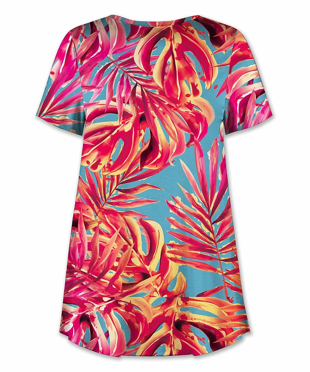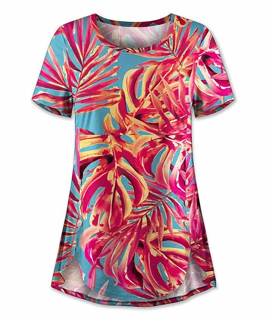 Add a fresh new favorite to your casual collection with this top boasting light, stretchy fabric, button detailing and a curved hem.