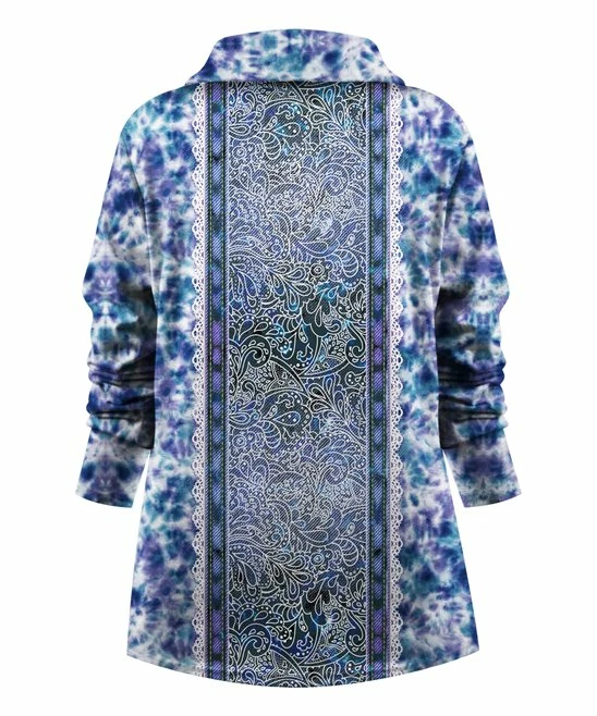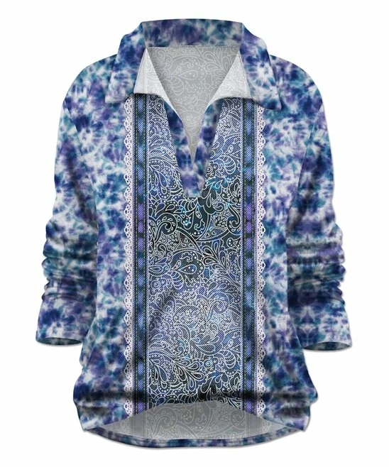 You’ll look effortlessly put-together in this top that features a lively print and a collared notch neckline.