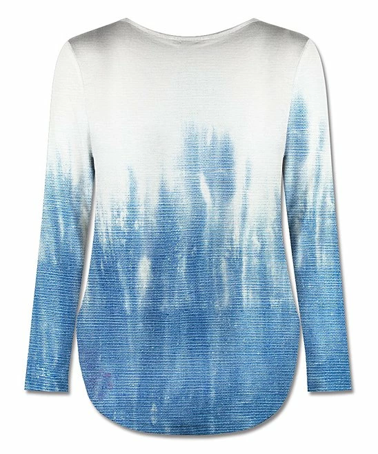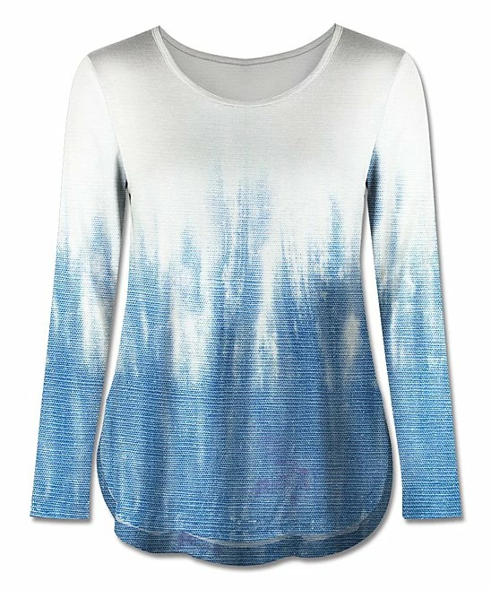 Enliven your casual style with the bold print of this top that features cozy long sleeves and a curved hem.