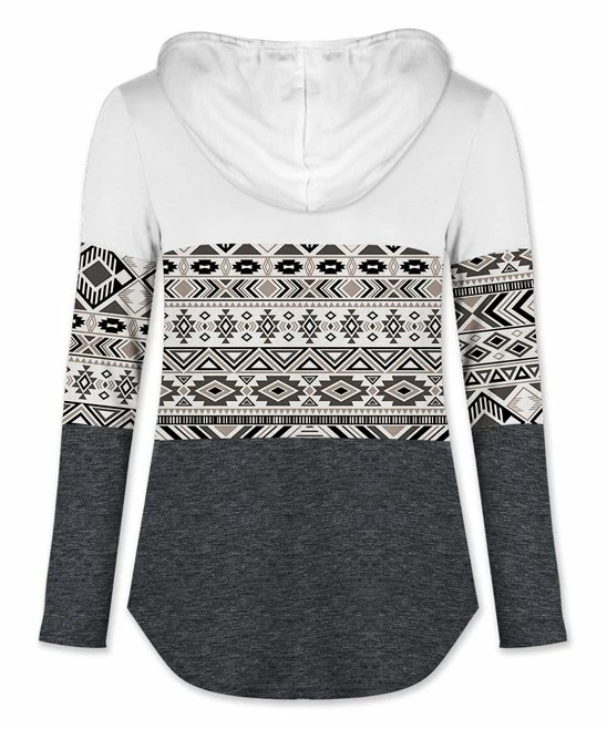 Whether you’re watching a movie or grabbing dinner with the family, stay cozy with this lightweight hoodie boasting a dynamic geometric design and stretch-infused fabric.