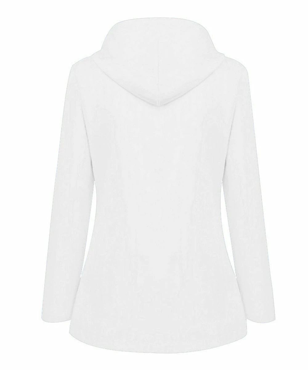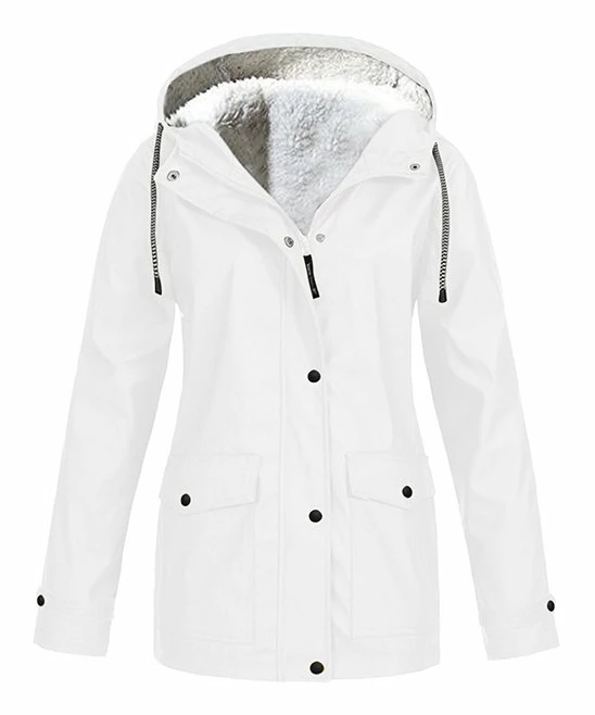 This monochrome raincoat features a fleece lining and water-resistant fabric.