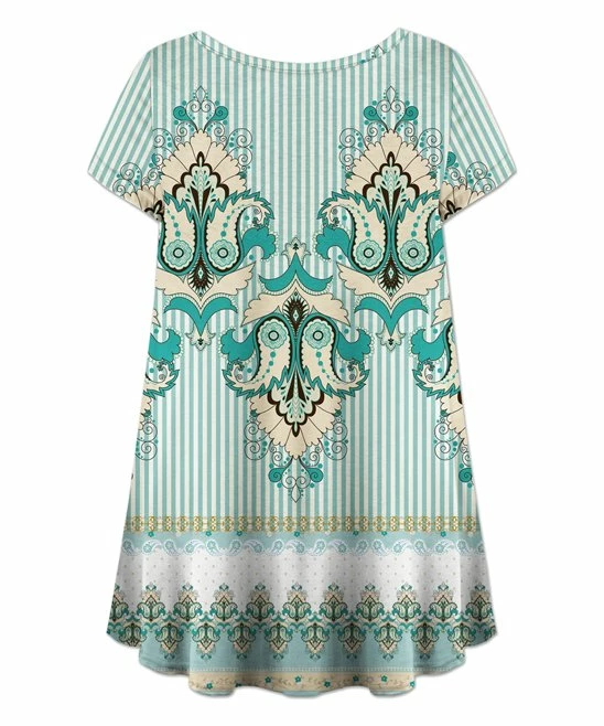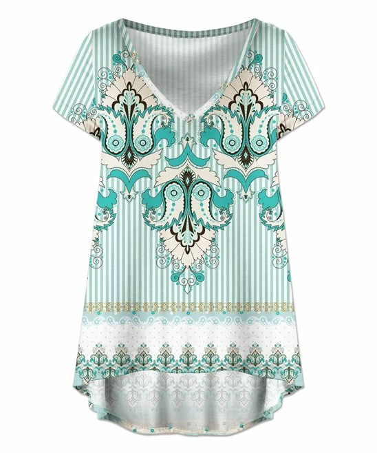 Bring your wardrobe to life with the eye-catching print of this top that features a flattering v-neck and a flowing hi-low hem.