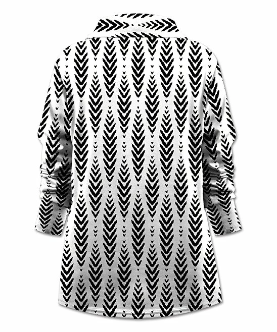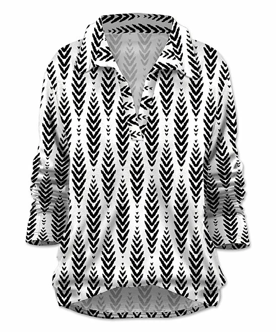 A hi-low hem and a shirt collar make a polished pair in this playfully printed top.