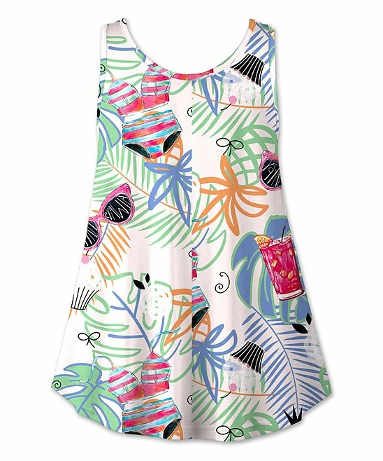 Breeze through sunny days in this swingy tank that features a flattering scoop neckline and a vibrant tropical print.