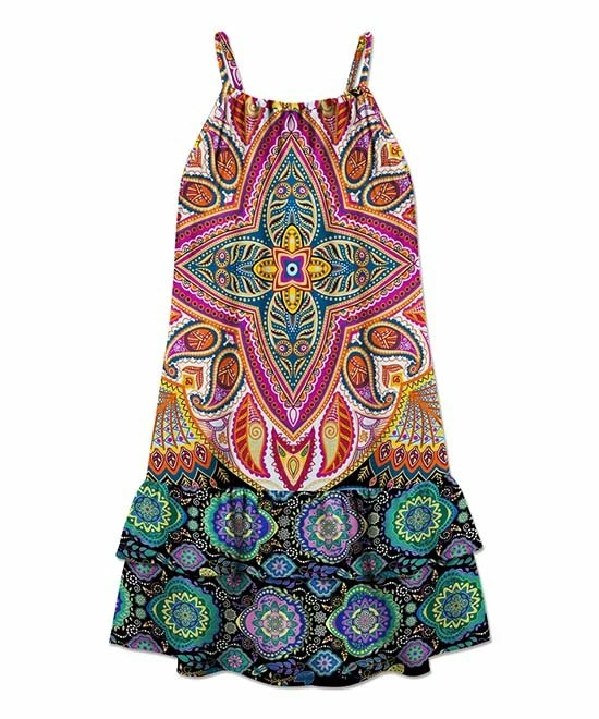 Tiered ruffles dance along the hem of this twirl-inviting dress that frames your shoulders with narrow straps.