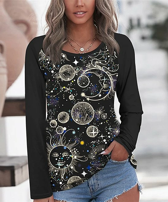 Featuring a vibrant print and contrasting sleeves, this raglan top is an easy casual pick.