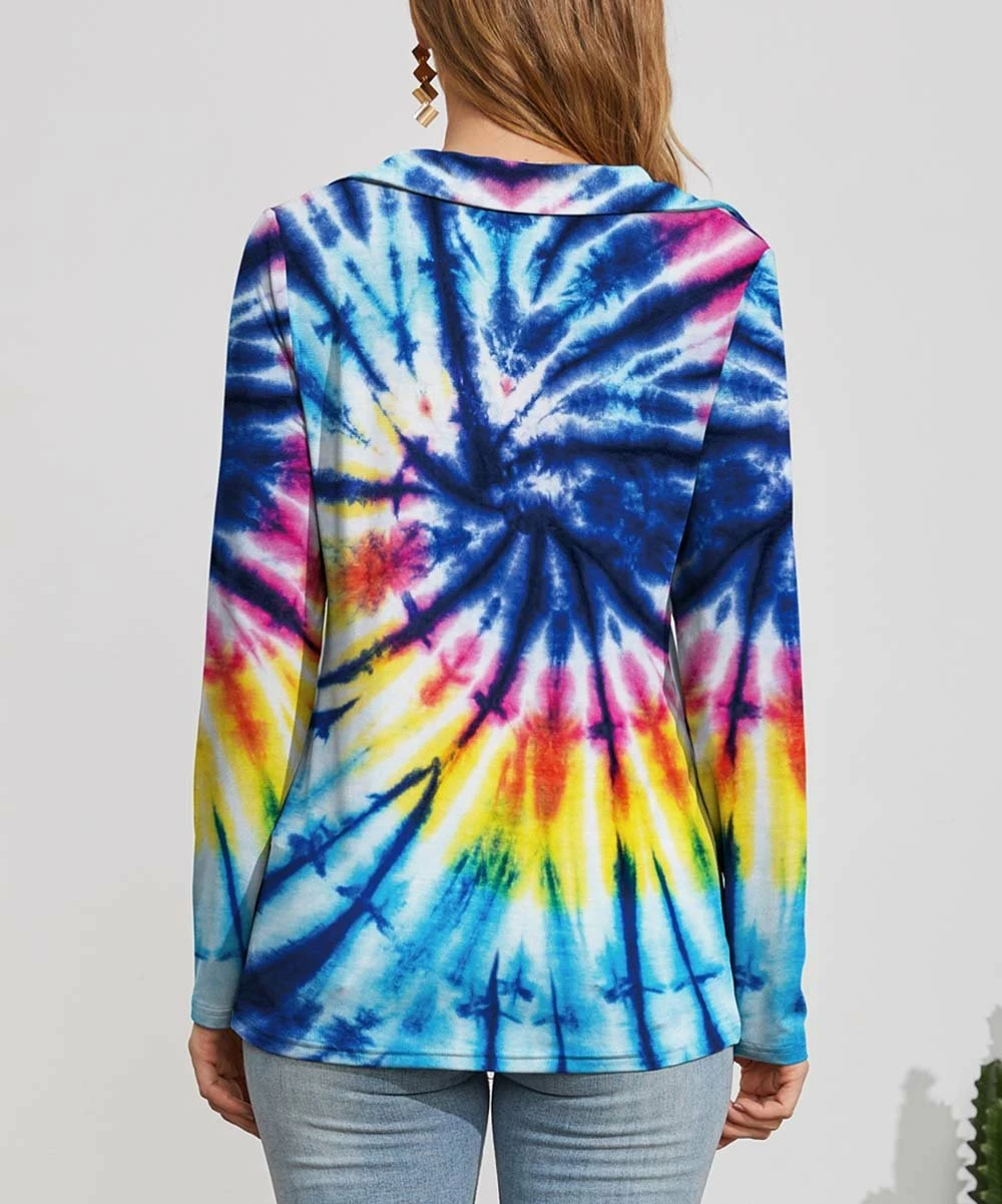 Easygoing long-sleeve top with a collared notch neckline and allover lively print.