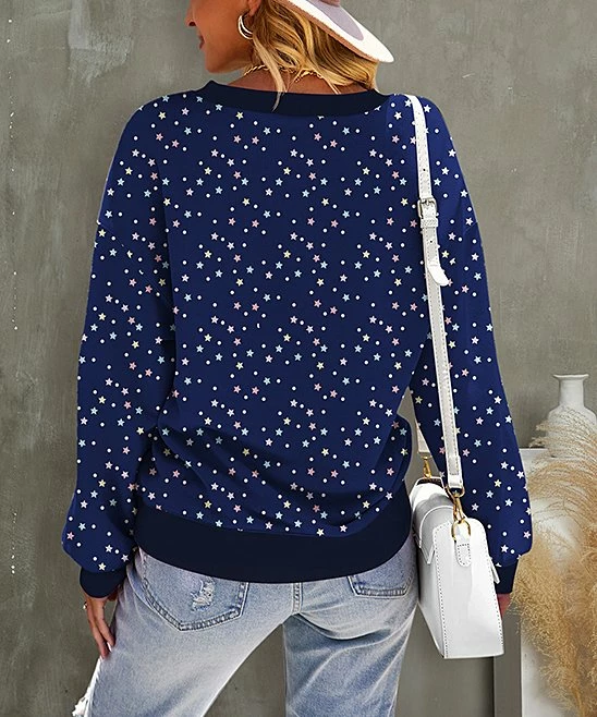 Update your wardrobe with this starry top crafted with stretch and long sleeves.