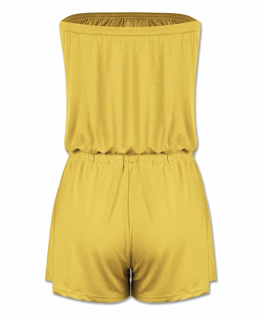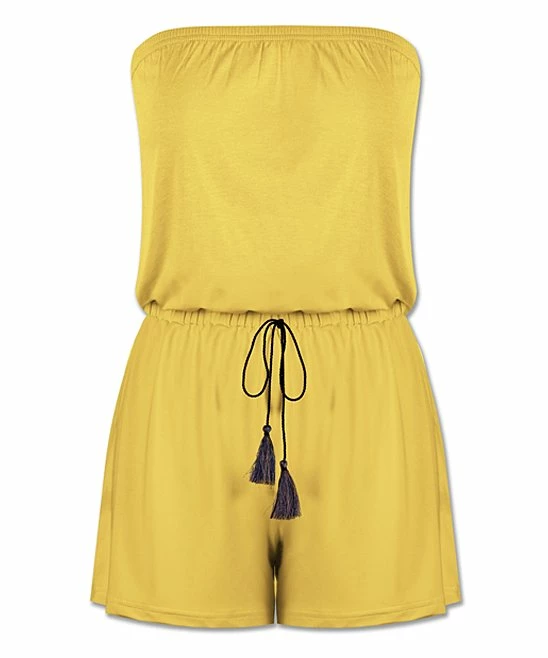 You can sun your shoulders wearing this strapless romper made with a tassel-trimmed drawstring waist to emphasize your figure.